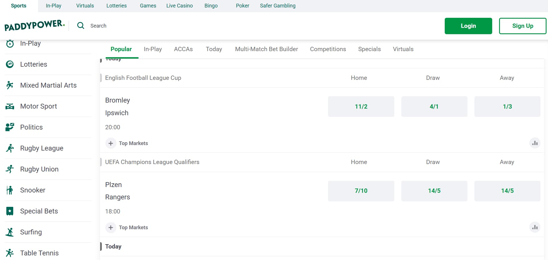 Paddy Power provides one of the widest sportsbooks accessible to UK bettors, with strong coverage of football and horse racing alongside more than 30 additional sports such as tennis, golf and darts. The platform boasts impressive market depth across key leagues and events, while tools like Bet Builder, Cash Out and enhanced acca bonuses allow you to tailor your wagers and boost potential returns.